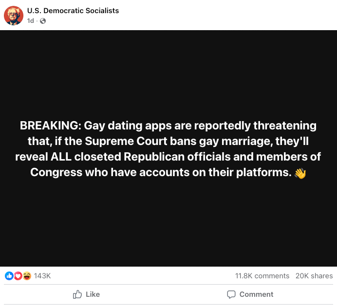 A viral social media post claimed that after the US Supreme Court was formally asked to overturn same-sex marriage, gay dating apps were planning to out ‘closeted Republican officials’ – but it’s not true. The US Supreme Court was asked this week to consider hearing a case from former county clerk Kim Davis, which seeks […]